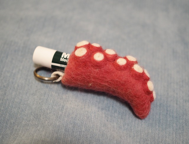 【受注生産】 タコ足のキーホルダーです。 リップが入ります。 むちむちしてて握り心地も良いです。 オスメスあります。 個体差があります。 サイズ 約9×3.5cm 素材 羊毛フェルト ループ レザー ・羊毛フェルトで制作しています。 素材の性質上、使用していくうちに毛羽立ちがでてきます。 その際はハサミなどで優しくカットしてください。 ・強い力で模様やパーツの部分をひっぱると破損する可能性がございますので、優しく扱ってください。 ・ひとつひとつ手作業で制作しています。 ハンドメイド作品であることをご理解の上、ご購入をお願いします。